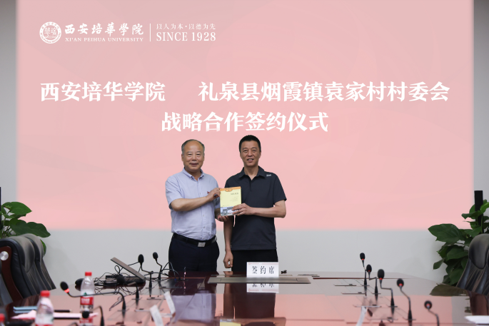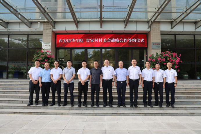 西安培华学院校长助理姜涛代表学校与袁家村村委会签约。姜波理事长向郭占武书记颁发聘书,聘请郭占武书记为西安培华学院乡村振兴研究院名誉院长。