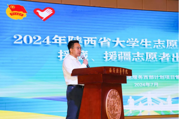 7月14日,2024年陕西省大学生志愿服务西部计划援藏、援疆志愿者出征仪式在西安培华学院举行。团省委副书记、省西部计划项目办主任惠旋,团省委二级巡视员王军民出席活动并为援藏、援疆志愿服务队授旗。我省382名西部计划志愿者将奔赴西藏、新疆和兵团开展为期1至3年的志愿服务。