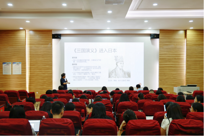 会谈结束后,何晓毅教授为外语系教师做了题为“《三国演义》在日本的影响及翻译家立间详介的贡献”的学术报告。他详细梳理了《三国演义》在日本的流传情况,不同版本的区别,以及由此改编的影视作品、动漫等,探究中国文学作品对日本产生的影响。他指出立间祥介为推动《三国演义》在日本的传播,促进中日文化交流做出了很大贡献。