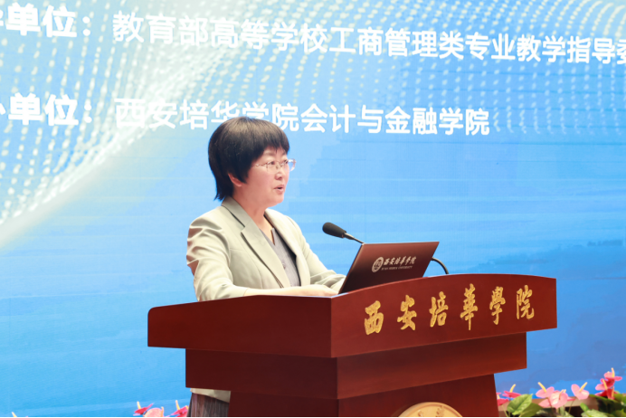 在专题报告环节,西安培华学院会计与金融学院教学副院长孟君以《“以本为本,以学生为中心”加强一流本科专业建设的探索与实践》为题进行分享;西京学院会计学院院长李海霞以《会计教育的焦虑》为题进行分享;西安交通大学城市学院管理学院院长助理屈雯以《数智化应用型人才培养与一流专业建设探索与实践》为题进行分享;新道科技股份有限公司助理总裁眭召强先生以《产教深融合以AI+成就新质会计人才》为题进行分享;沈阳跃客教育科技有限公司副总裁王芳芳女士以《校企联动,产教相融:教学案例库构建的策略与实践》为题进行分享;陕西中鸿财税研究院有限公司总经理赵江波先生以《经管类专业校企合作实践案例》为题进行分享。