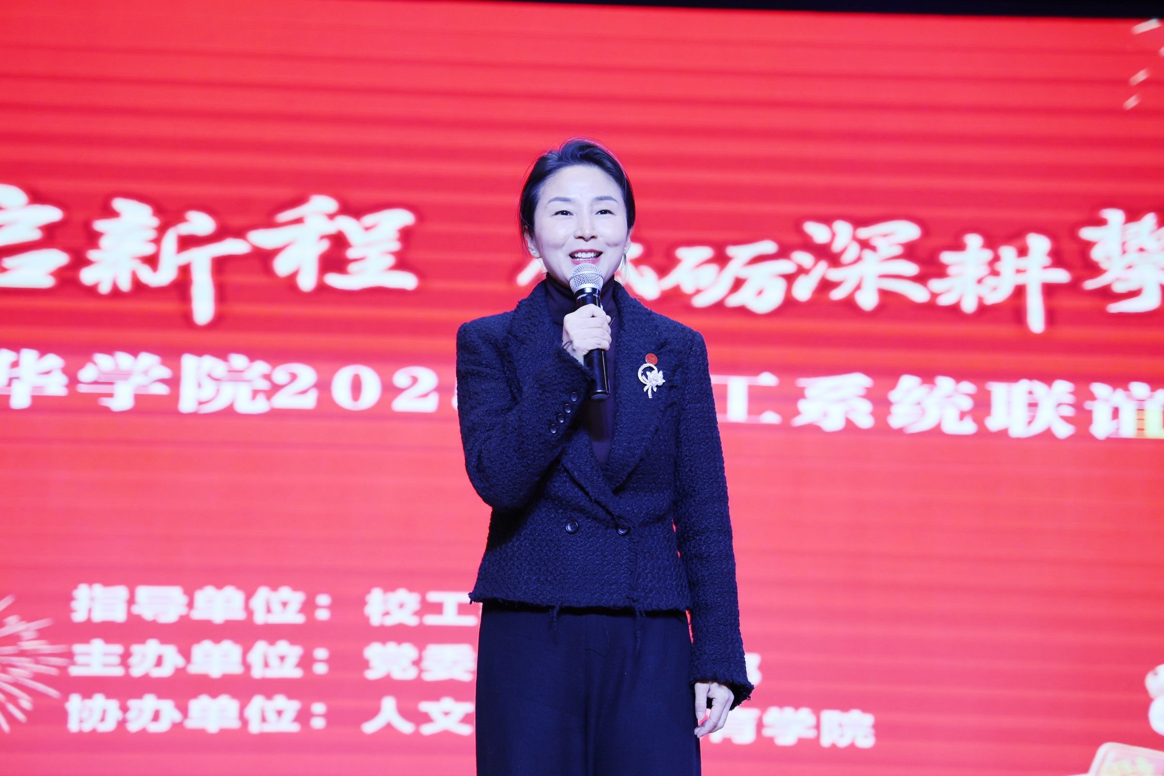 副校长、党委副书记姚文静在致辞中讲到,过去一年全体学工同仁用满怀热情、踏实奉献、砥砺奋进书写了一段段感人至深、激励人心的故事,她代表学校领导班子向大家致以诚挚的问候和衷心的感谢。在2025年启程之际,她期待学工队伍擦亮奋斗底色、同心同向同行,将温暖与爱继续传递,以更加饱满的热情、更加坚定的步伐,绘制出更加辉煌灿烂的篇章。