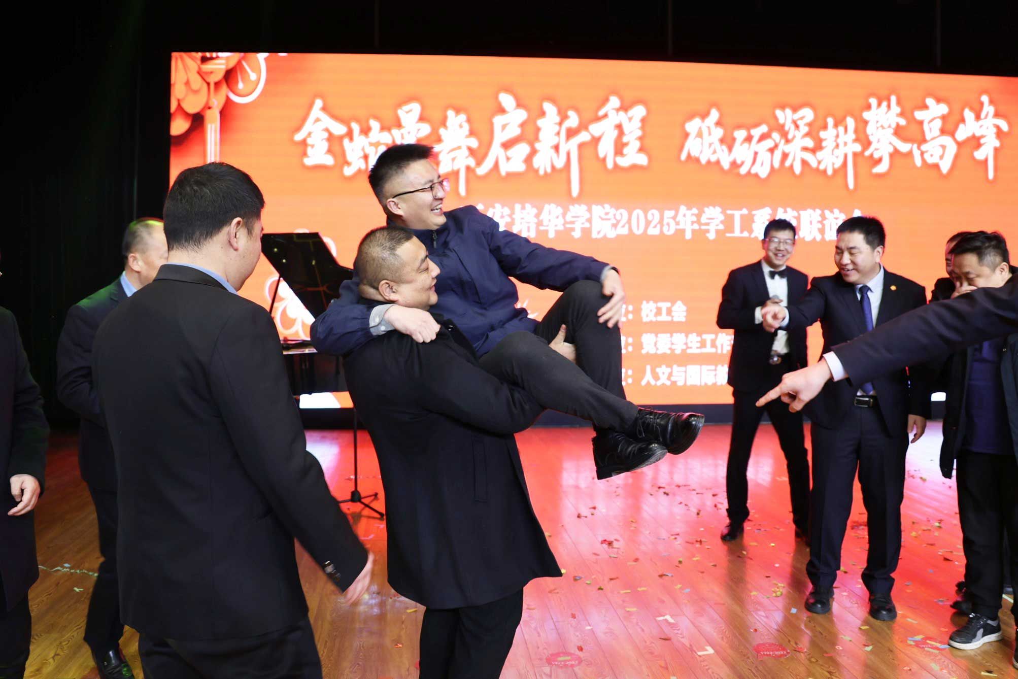 金蛇漫舞启新程,砥砺深耕攀高峰。1月10日,由校工会指导、学工部主办、人文与国际教育学院承办的2025年学工系统联谊会顺利举行。学校副校长、党委副书记姚文静,学生潜能发展中心,招生与就业指导中心,学工部,校团委等相关负责同志,各二级学院党委(党总支)书记、副书记及全体辅导员和学工同仁们共聚一堂,共同打造辞旧迎新的盛会。
