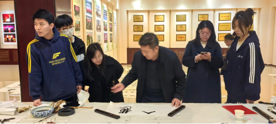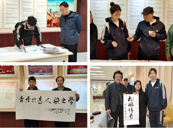 座谈会结束后,书画家们来到校史馆参观,并现场指导培华学子书法、绘画技巧,为其答疑解惑并赠送作品。