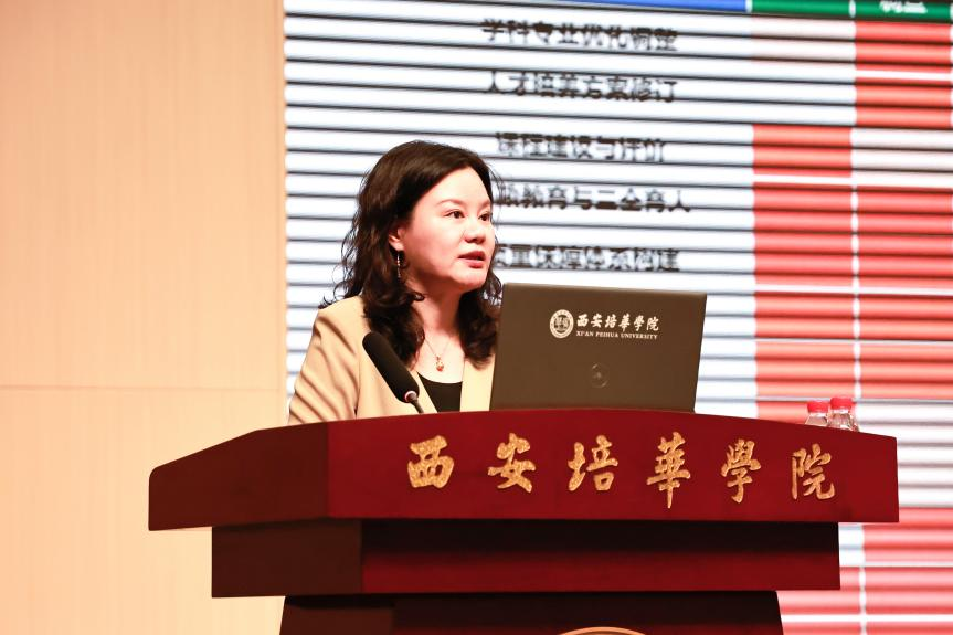 为进一步完善学校质量保障体系,夯实“自觉、自省、自律、自查、自纠”质量文化,4月29日下午,西安培华学院在明德楼报告厅举行2024年度第三方质量监测数据分析解读会。麦可思研究院副院长、《麦可思研究》主编马妍受邀解读报告,全体校领导、中层干部、专业带头人及骨干教师等200余人参会,常务副校长胡俊生主持会议。