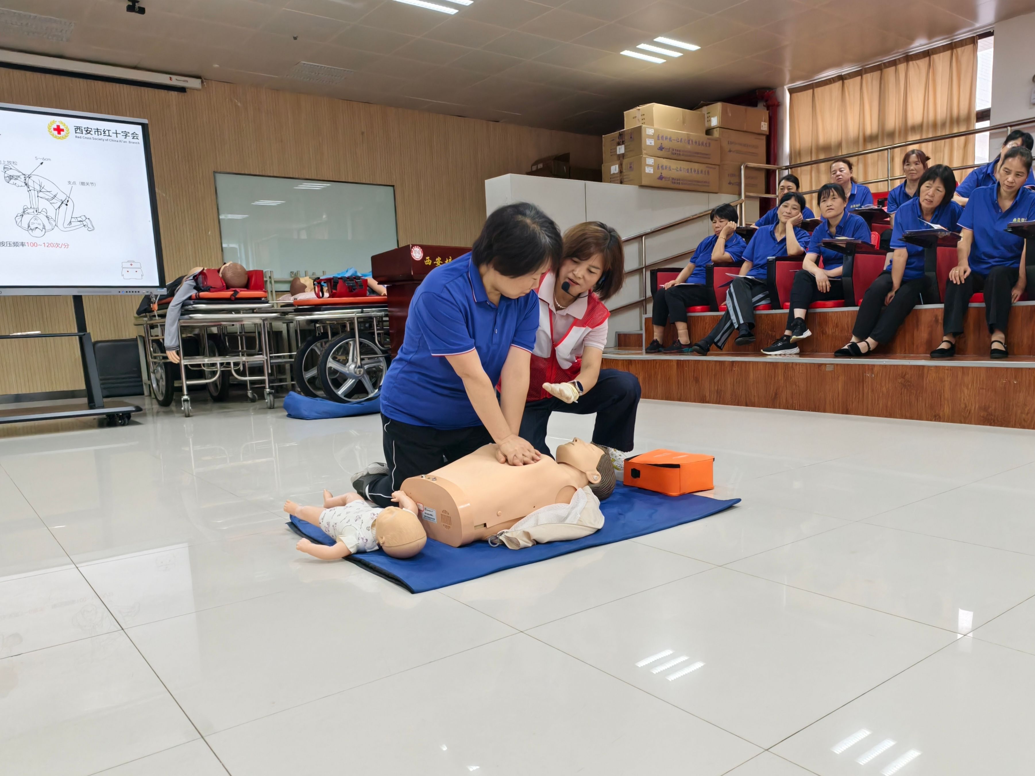 为筑牢学生社区安全防线,保障学生突发身体状况时能得到及时救助,学生社区特邀西安市红十字会为公寓管理员及后勤工作人员开展了“应急救护培训”。培训采用“理论讲解+情景模拟”模式,重点教授了应对呼吸骤停(心肺复苏术CPR)、昏厥抽搐及气道异物梗阻(海姆立克急救法)的标准操作流程。管理员们认真进行情景模拟练习,操作规范流畅,培训效果显著。鼎晟物业培华项目部经理庞磊强调,公寓管理员是校园安全的重要守护者,此次培训不仅传授了技能,更强化了“第一响应人”意识。