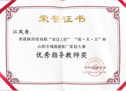 近日,由中共陕西省委教育工委主办、西北政法大学承办、商洛市山阳县人民政府协办的陕西省高校“双百工程”“漫·天·月”杯山阳全域旅游推广大赛中,西安培华学院学生团队荣获二等奖一项,任宇春、黄荟臻两名同学荣获“山阳旅游形象大使”称号,江凤香老师荣获“优秀指导教师”称号。