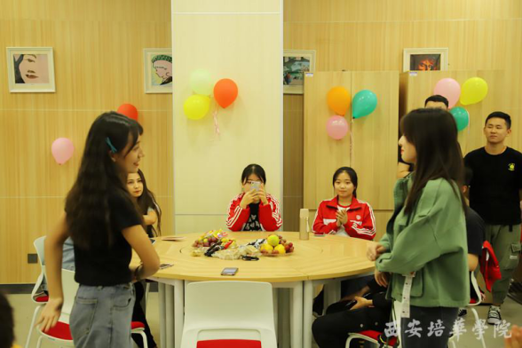 人文与国际教育学院辅导员孙雨佳发言,她讲到非常开心作为培华崭新的一份子在这里和大家相聚,正直中秋佳节来临,在此刻把大家团聚在一起,共同欢度佳节,各民族的同学要相互了解、相互尊重、相互包容、相互欣赏、相互学习、相互帮助,像石榴籽那样紧紧抱在一起。同时,作为新生辅导员,她也给大一的新生们提出了一些诚恳的建议,她希望大家可以充分利用学校图书馆的资源,多读书,读书不仅可以提升人的气质和素养,而且每个人在读书的过程中还会遇到那本“对的书”。