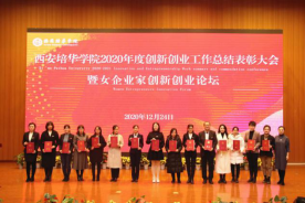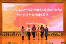 12月24日下午,学校在图书馆报告厅举行西安培华学院2020年度创新创业工作总结表彰大会暨女企业家创新创业论坛,本次活动共计400余名师生参与。
