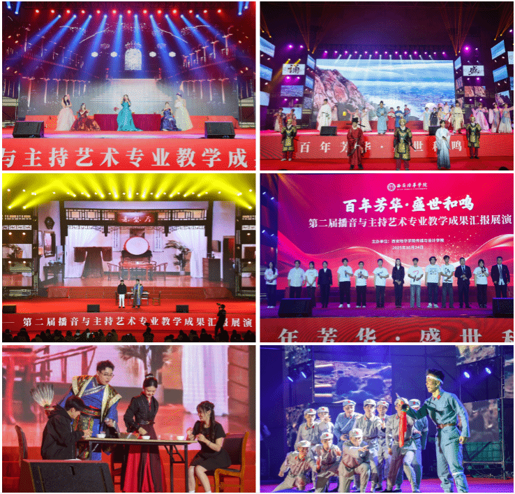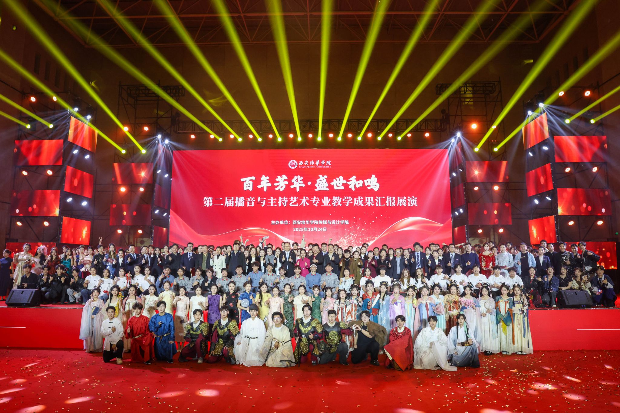 10月24日晚,西安培华学院体育馆内,“百年芳华 盛世和鸣”2025播音与主持艺术专业教学成果汇报展演华彩上演。兄弟院校专家教授、校企合作企业代表、学校领导、各院(部)中心负责人及师生代表参加此次晚会。传媒与设计学院学生李心昕、梁子翔、王海怡、杨旨毅、高扬子、任禹丞主持本次活动。