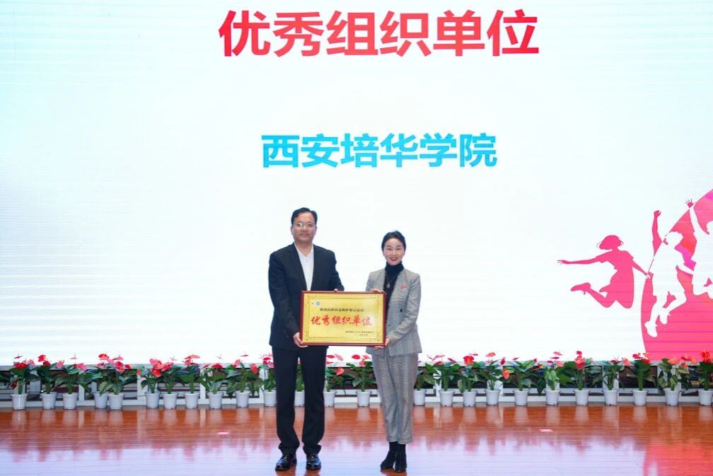 西安培华学院理事长姜波为获得主题演讲单项奖选手颁奖
