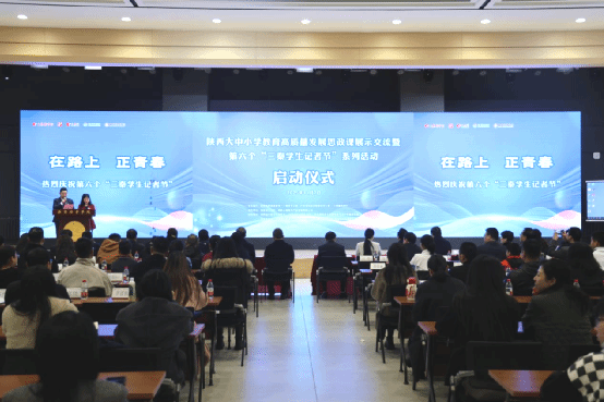11月7日,“在路上,正青春!”陕西大中小学教育高质量发展思政课展示交流暨第六个“三秦学生记者节”系列活动启动仪式在西安培华学院汇知楼阳光厅举行。200余名师生代表与专家学者齐聚一堂,共话思政育人,展现青春风采。本次活动由陕西省思政课教学“三秦学生记者”社会实践活动组委会办公室、三秦都市报社主办,西安培华学院传媒与设计学院、陕西三秦教育产业发展有限公司承办,传媒与设计学院播音与主持艺术专业教师贾登银、屈阳主持。
