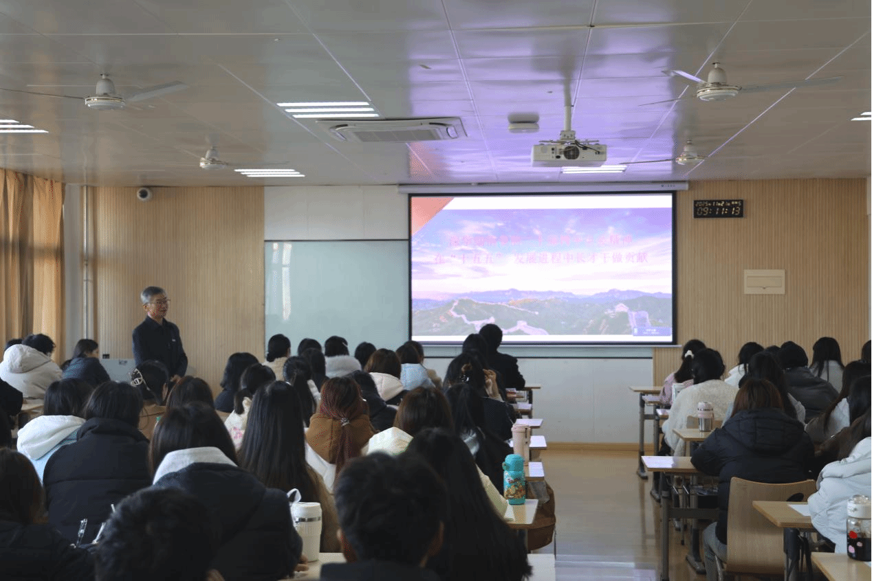课堂上,刘锋书记从“十四五”规划的辉煌成就与陕西足迹谈起,聚焦“十五五”的宏伟蓝图,用青年身边的鲜活事例,生动解读了未来的发展目标与战略任务。他指出,《建议》是引领我们迈向中国式现代化新征程的“青春指南”,其指导方针清晰,任务明确,是国家的又一次伟大动员。他勉励在场同学,要将个人理想融入时代浪潮,深刻领悟“两个确立”的决定性意义,增强“四个意识”、坚定“四个自信”、做到“两个维护”,将全会精神转化为勤奋学习、矢志报国的实际行动。