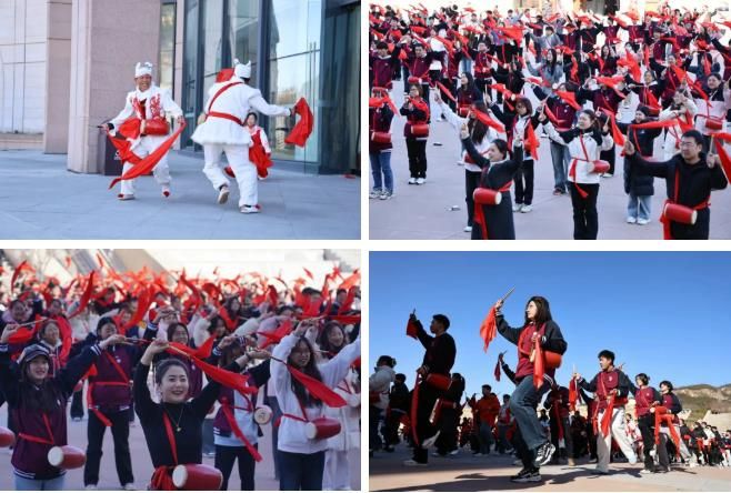 场景互动体验课中激情教学陕北腰鼓,红色的腰鼓系在腰间,鲜艳的绸带随风飘扬。学员们认真学习基本动作和技巧,敲打出激昂有力的鼓点。欢快的鼓声中洋溢出灿烂的笑容,红色文化在互动传习中代代相传。