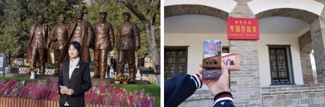 简陋的窑洞、朴素的陈设,枣园革命旧址像一本永远读不完的书,师生通过参观老一辈革命家的旧居,感悟中国共产党从领导局部抗战转向全国胜利的智慧与勇气。兴华朋辈宣讲团在“五大书记像”前进行理论微宣讲,并分发扫描后可触发跨时空动画的定制AR卡片,使学员们直观感受延安整风运动、筹备中共七大等史实。