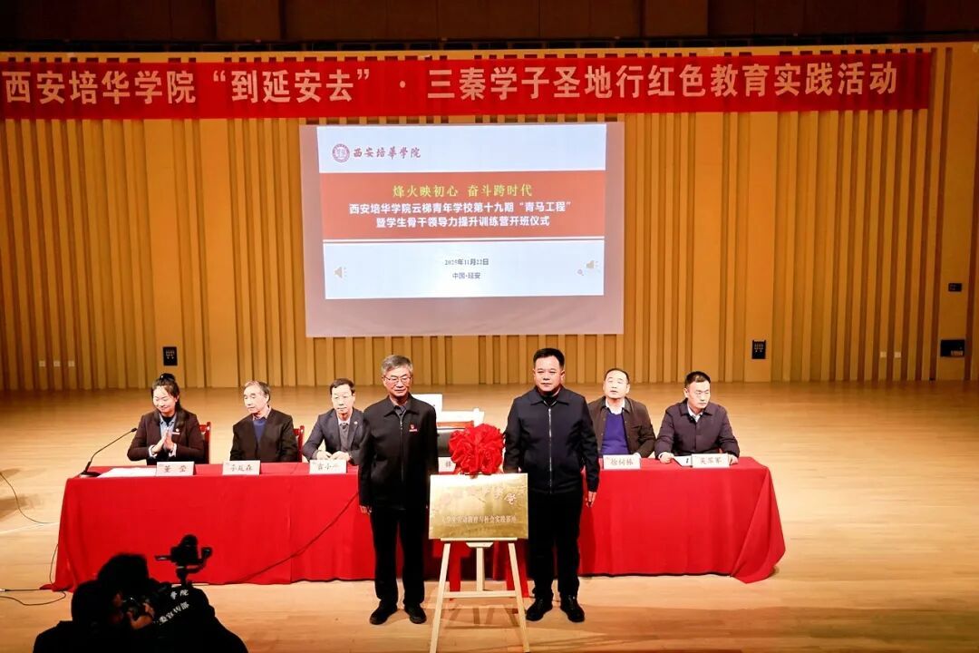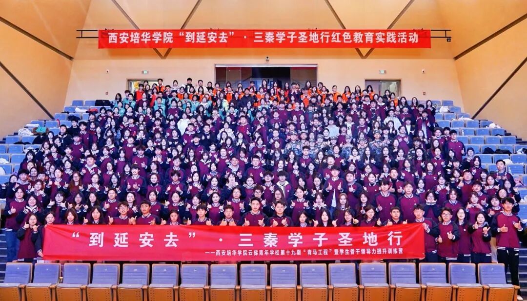 384名师生齐聚延安大剧院,举行西安培华学院云梯青年学校第十九期“青马工程”学生骨干领导力提升训练营暨西安培华学院“到延安去?三秦学子圣地行”红色教育实践研学活动开班仪式。