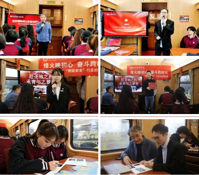 车轮滚滚,思政之灯暖意长明。西安培华学院“红旗颂”创新理论宣讲中心的老教授、青年教师、学生宣讲员等,依托“理论精讲+影像溯源+声动共鸣”模式,在列车上开设思政课堂,马克思主义学院银龄教授李建森、青年思政名师张梦珅聚焦延安精神,解读其核心内涵与时代价值;“烽火映初心 奋斗跨时代”主题微课堂上,图文影集串联革命史实与精神脉络,以青春笔触重温培华自1928年创校以来的奋斗历程,讲述培华与民族同命运、与时代同步伐的故事,让师生于红色传承中感悟革命先辈的奋斗精神,厚植家国情怀,做坚定信仰的践行者。