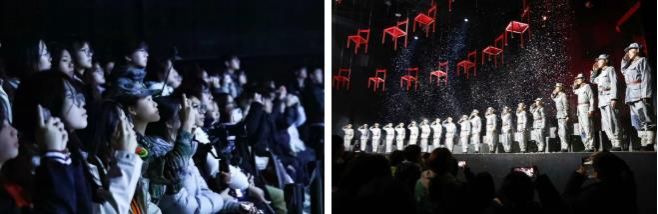 大型沉浸式情景剧《再回延安》带领学员们重走长征路,红色记忆穿透长夜直击心灵。从泛黄日记里的血色回忆,到冰冷寒窟的“冰雪长征路”,从黄河怒吼的《黄河颂》,到枪林弹雨中的冲锋呐喊,师生们在声光影交织中泪目,直呼“课本里的历史活过来了!”