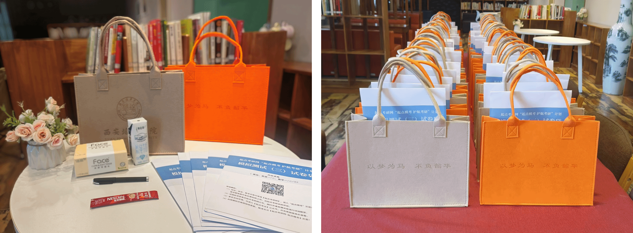本次发放的考研能量大礼包兼顾实用性与人文关怀,贴心助力学子备考。定制文化袋设计简洁实用,方便学子日常收纳复习资料、笔记本等学习用品,轻便耐用;中性笔选用流畅笔尖与舒适握感设计,助力高效记录知识点;精选的起点考研网优质模拟题精准贴合考研备考核心需求,为学子们的复习之路添砖加瓦。此外,图书馆还贴心准备了抽纸、牛奶、咖啡等物资,为长期高强度备考的学子及时补充能量、缓解学习疲劳,让大家在紧张的冲刺阶段感受到学校实实在在的温暖关怀。