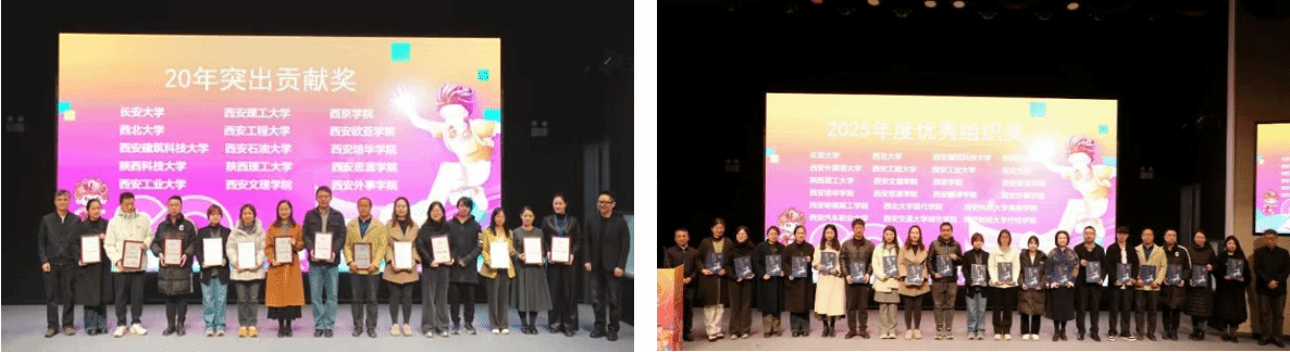 颁奖环节,西安培华学院凭借长期卓越组织、深度参与及丰硕成果成为焦点,一举斩获三项荣誉:“大广赛20年突出贡献奖”“第17届大广赛陕西赛区优秀组织单位”称号,传媒与设计学院童瑾老师获“第17届优秀组织工作者”个人奖项。