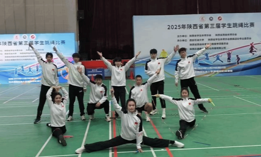 2025年12月21日,为期两天的陕西省第三届学生跳绳比赛在西安石油大学雁塔校区圆满落幕。作为全省覆盖学校最广、规模最大、竞技水平最高的校园跳绳盛会,本次赛事吸引了全省128所学校的2170余名学子同台竞技,我校花样跳绳代表队凭借过硬的竞技实力与优良的赛场风貌,一举斩获团体总分第一名,并荣获道德风尚奖,实现竞技成绩与精神文明的双重丰收。