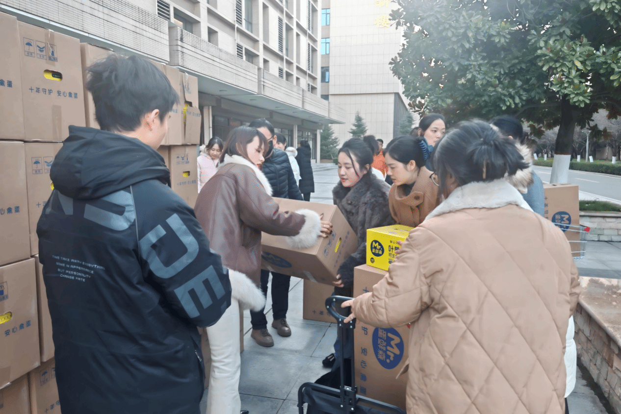 此次慰问品精心挑选了兼具营养与健康的新年礼包,包括“蛋先森”叶黄素可生食鸡蛋和“好想你”每日红枣各一箱,寓意新的一年生活美满、身体安康。各基层分会信息员与教职工代表有序领取,学生志愿者积极配合协助,共计1600余份慰问品顺利发放至教职工手中,现场气氛温馨融洽。