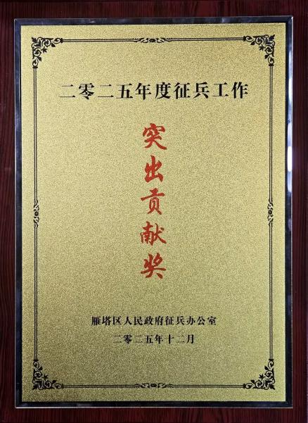 在2025年征兵工作中,西安培华学院再次顺利完成征兵任务,并获雁塔区“2025年度征兵工作突出贡献奖”