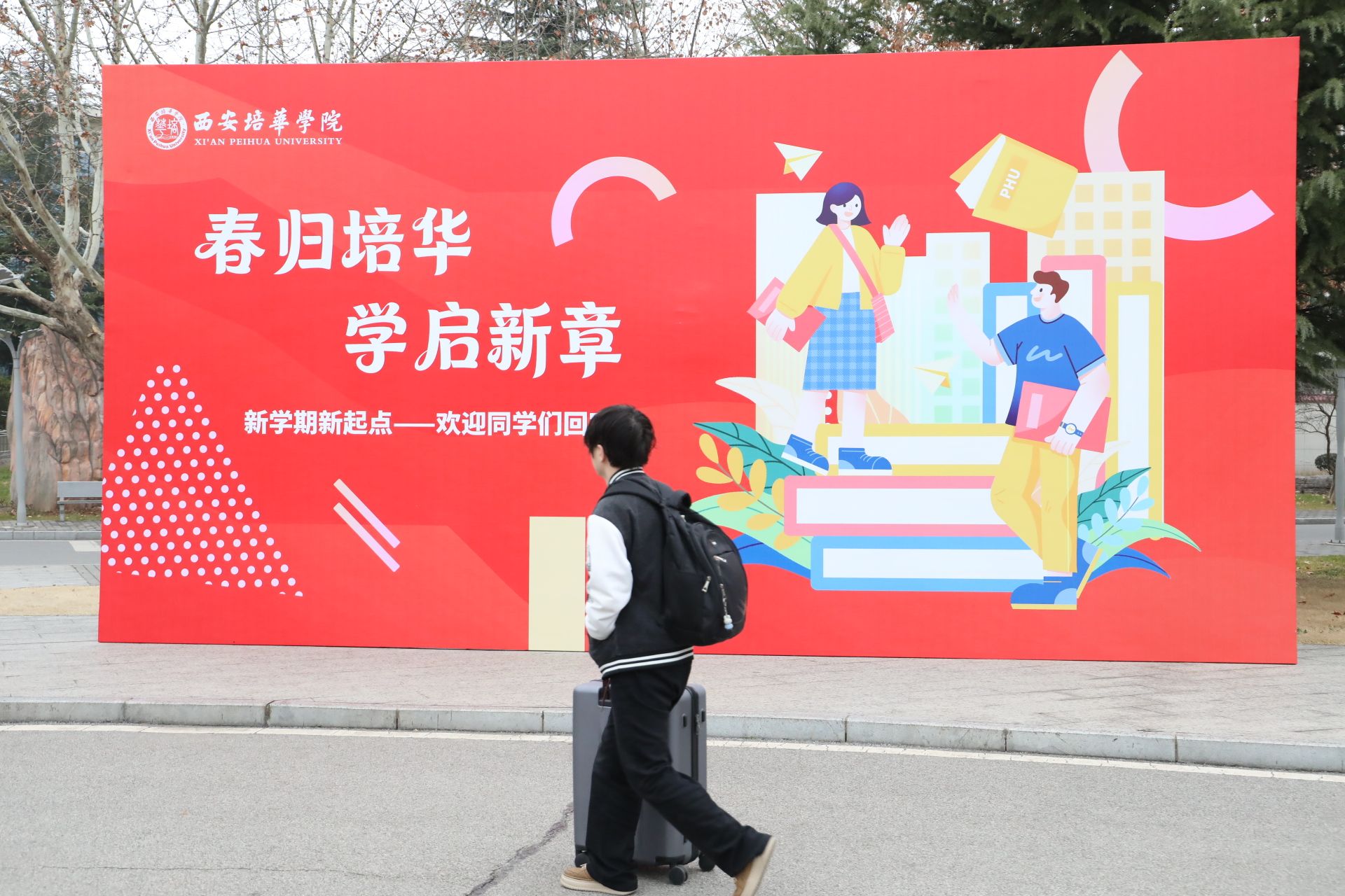 2月28日、3月1日,西安培华学院学生返校的日子。校园里,红色拱门高悬,励志标语挂满枝头,各个岗位的教职工井然有序地忙碌着——宿舍楼打扫一新,食堂窗口重新开张,教室里的桌椅摆放整齐。绿意迎着新岁渐渐浓厚,一切就绪,只等你回家。