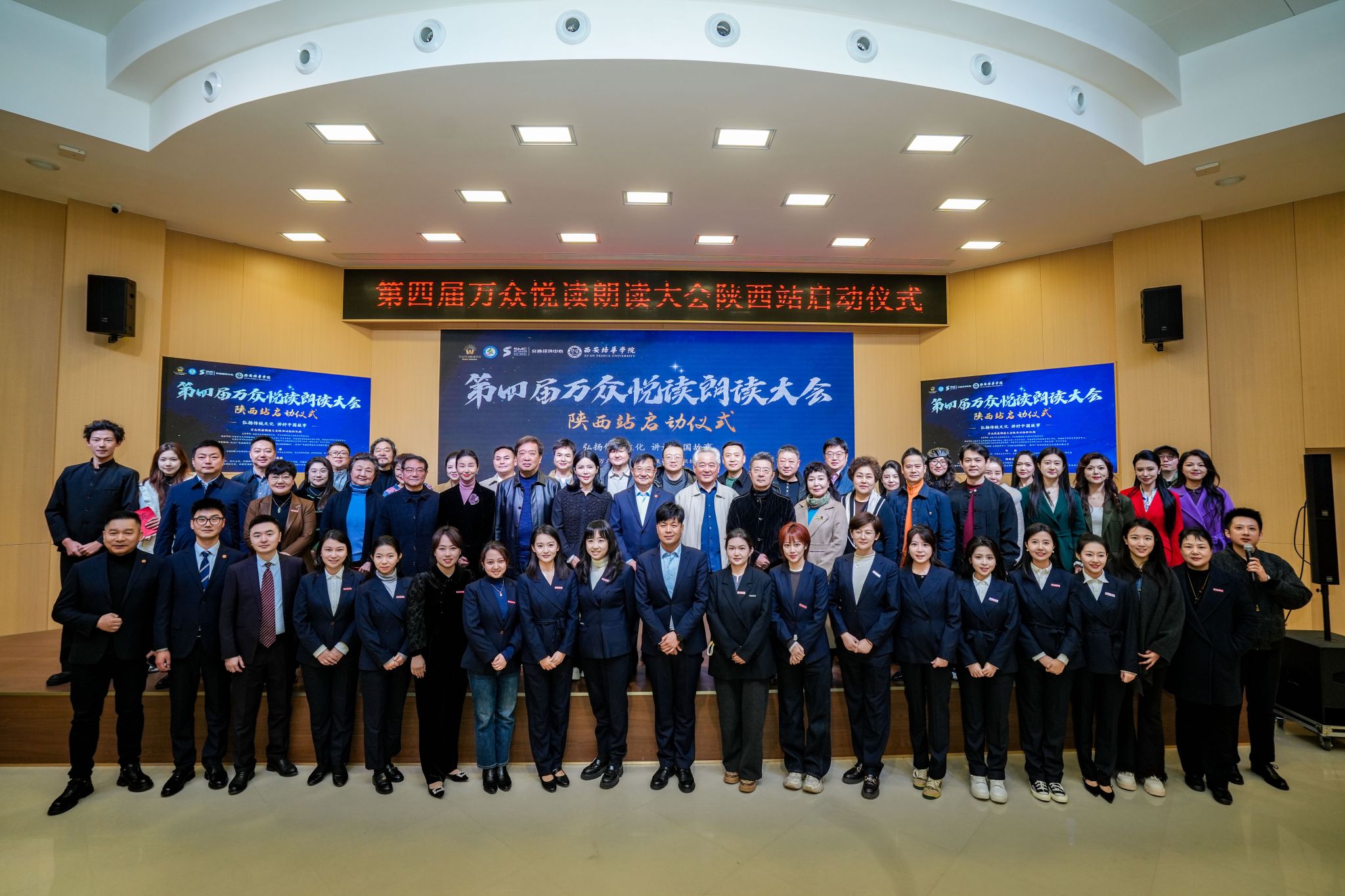 为弘扬中华优秀传统文化,推动全民阅读深入开展,讲好中国故事与陕西故事,第四届万众悦读朗读大会陕西站启动仪式在我校明德楼四层报告厅隆重举行。本次活动以“弘扬传统文化,讲好中国故事”为主题,众多省市文艺界名家、行业大咖、文化机构、兄弟院校代表,我校校长李映方,副校长、党委副书记姚文静及传媒与设计学院相关领导、师生代表共同出席启动仪式,与全省各地朗读爱好者齐聚一堂,共赴这场声音的盛宴、文化的盛会。