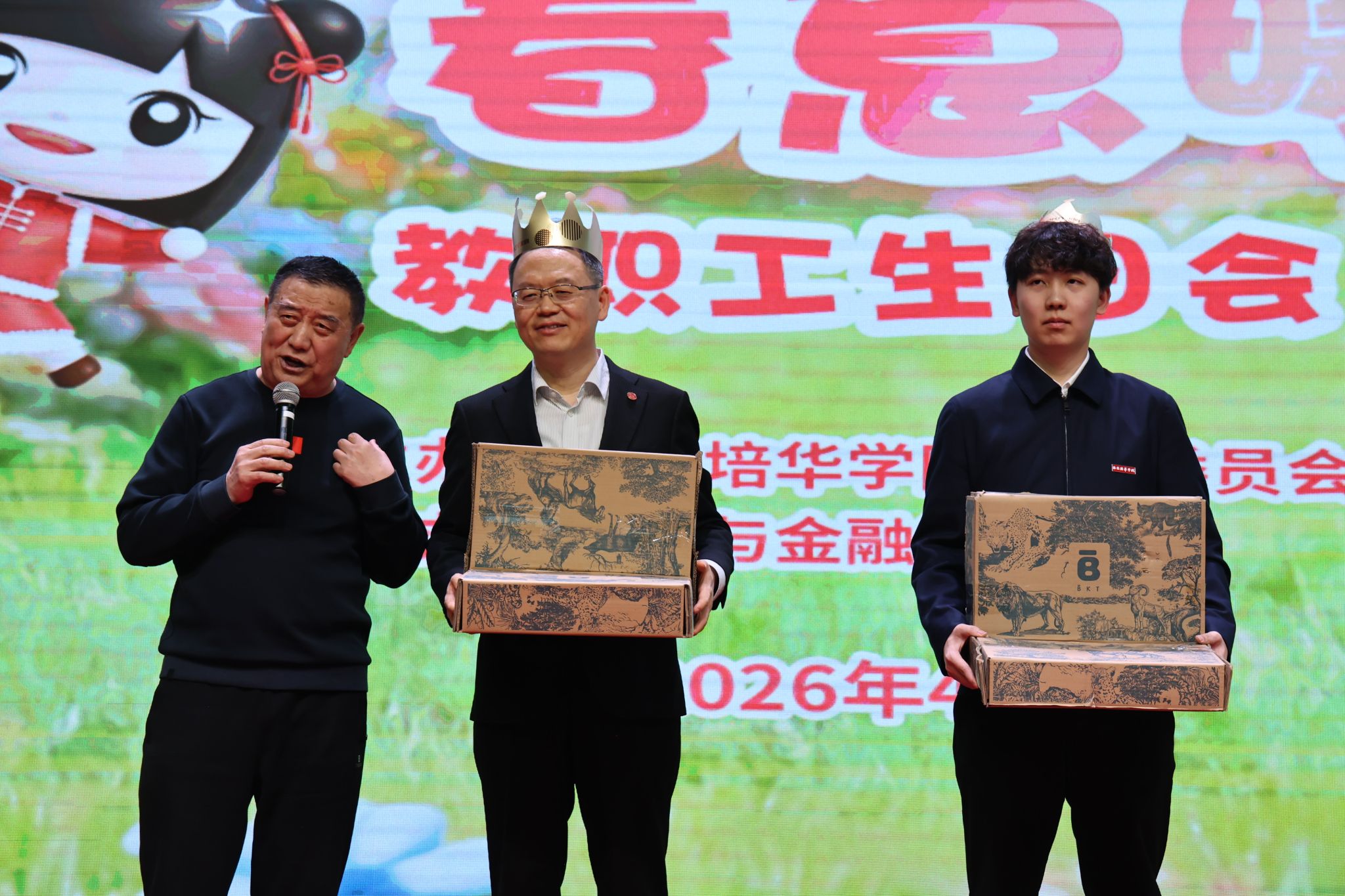 现场更有暖心一幕:原工会主席徐国富教授特意为姜波理事长、姜瀛初副校长送上生日祝福与礼物,传承培华大家庭的友爱与团结,将现场氛围推向高潮。