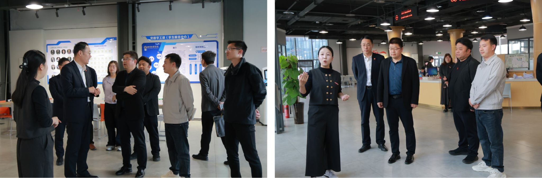 来宾一行依次参观了培华恒友楼“一站式”学生服务大厅、陕西省心理健康教育与咨询示范中心、职业生涯与就业指导智慧功能体验馆、笃行学生社区10号楼、学生社区多功能室、“雏鹰”工作室等,深入了解我校的学生工作开展情况,并共同探讨新时代学生工作的创新发展理念与举措。