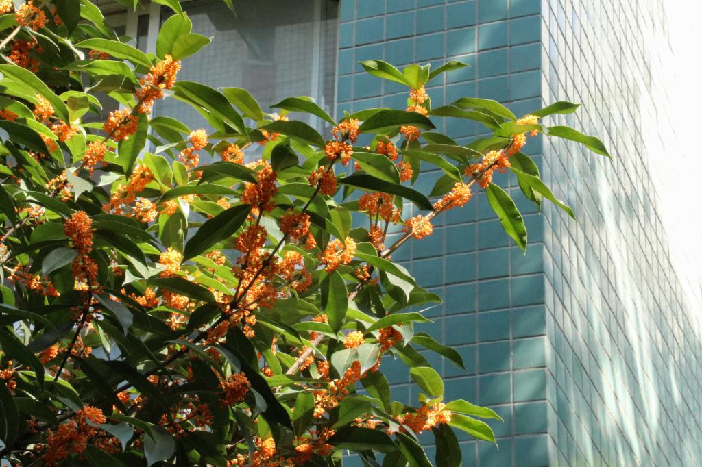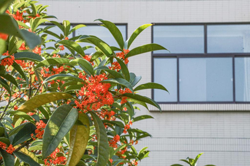 忆在山中时,丹桂花葳蕤。恒友楼旁映衬着蓝色窗体,它们在风中愈加明艳。