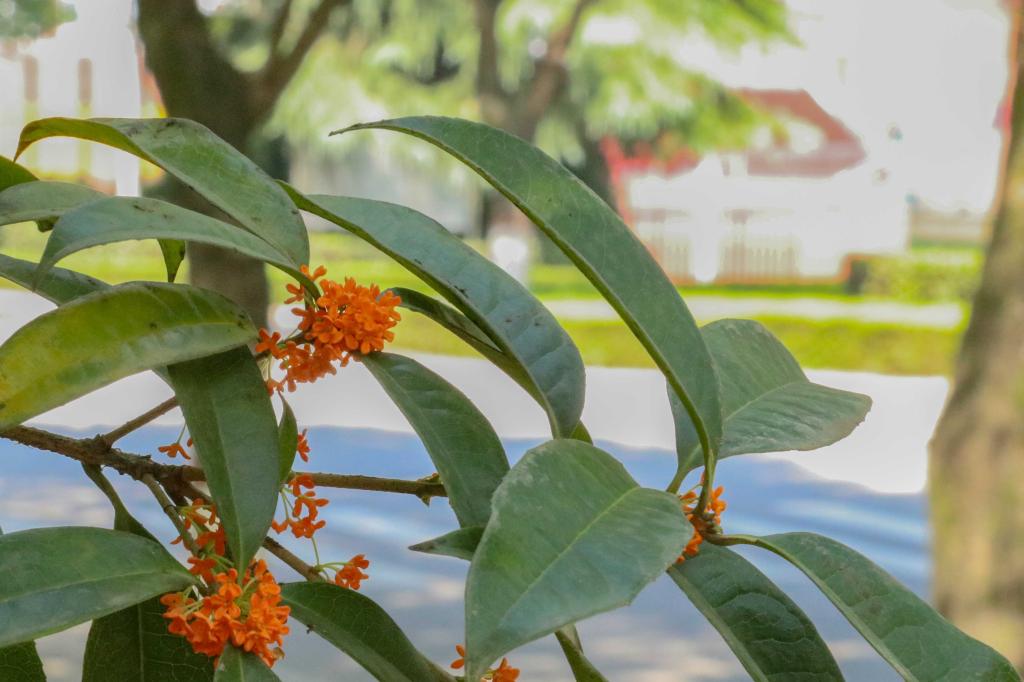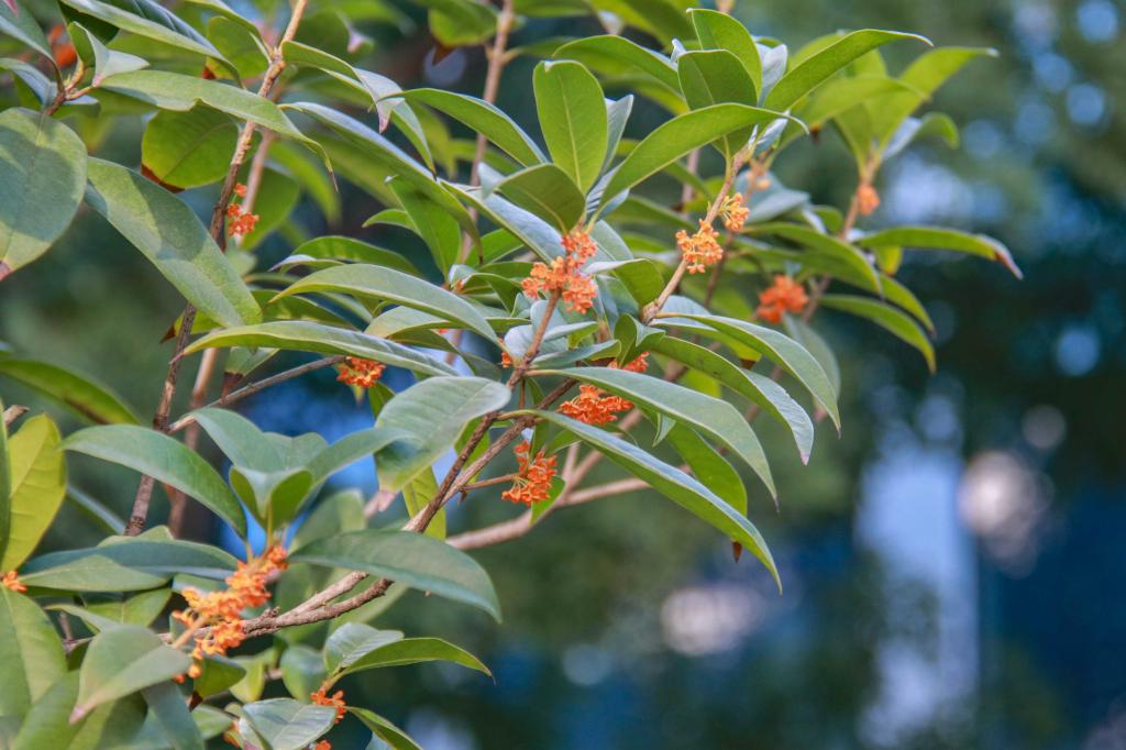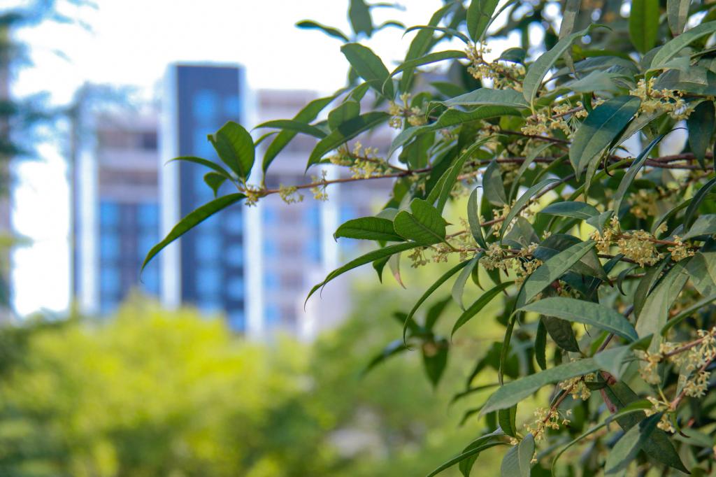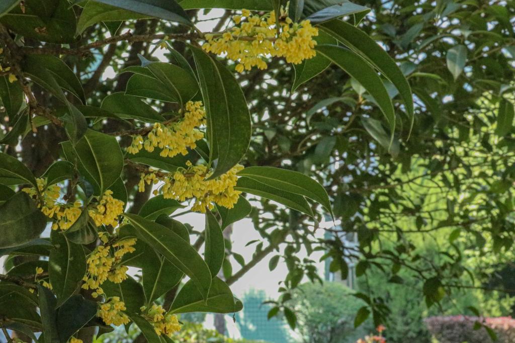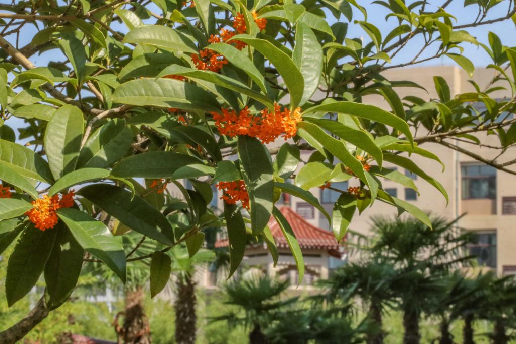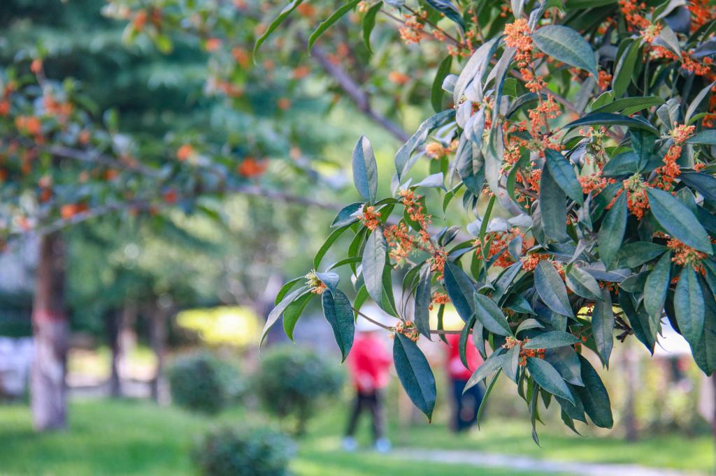 暗淡轻黄体性柔,情疏迹远只香留。培华园里桂花不遮不掩、点点星亮,用香气激起秋日涟漪。