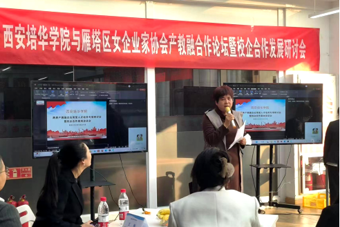 本次“跨界·融合”产教融合应用型人才培养专项研讨会暨校企合作意向洽谈会,促进了西安培华学院与西安女企业家协会的沟通与共建,有利于校企合作、资源共享,拓宽了人才的培养渠道和维度。参加本次会议的雁塔区女企协会员有:雁塔区女企协会会长梁树言、秘书长李国兴,西安卡西尔环保科技股份有限公司总经理陈波,陕西新同方汽车维修保养服务有限公司董事长李亚娟,西安鲜女品牌经营管理有限公司人资总监王峥嵘,陕西慧德青少年心理健康教育研究院副理事长梁冰妍,陕西顺利办信息科技控股有限公司副总经理万楠,西安有温度教育科技有限公司副总经理高翱,西安源初环境科技有限公司总经理蔡月清,西安市莲湖区邱学华门诊部院长邓黎,西安利兹美医疗美容有限公司总经理王立库,中科博文教育科技(西安)有限公司总经理杨鹏,陕西精挑优先供应链管理有限公司总经理苏超,陕西奇兔信息科技有限公司总经理祁昌锋,中正致诚人力资源(陕西)有限公司董事长张耀升,陕西鲁公筑学实业有限公司副总经理周薪,西安旅游协会负责人丁晓阳,西安康姿宝生物科技有限公司总经理徐维静,西安市退役军人服务协会副秘书长王艳,西安旭东升保洁服务公司项目总监赵森林。