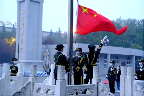 每个周一的清晨,西安培华学院师生都要举行隆重的升国旗仪式,在伴随着朝阳冉冉升起的五星红旗下,每个宣讲者掷地有声、字字铿锵地讲述着奋斗故事。自2019年11月以来,西安培华学院设立“国旗下的微课堂”爱国主义教育活动,至今已经开展了40余期。