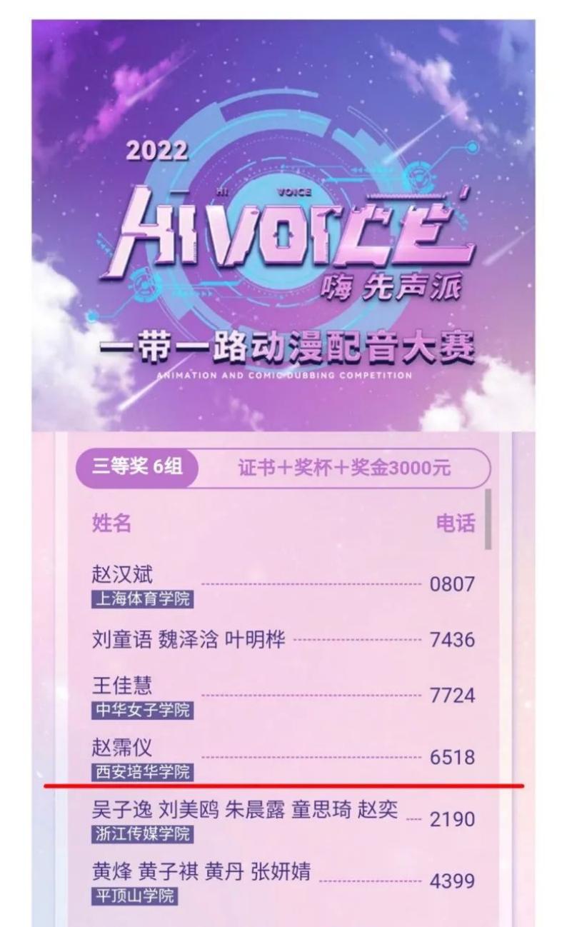 由中国出版协会指导,中共厦门市湖里区委宣传部和厦门外图集团有限公司共同主办的2022年“嗨,先声派”一带一路动漫配音大赛圆满结束。此次比赛收到全国100多所高校和中国台湾、中国香港,加拿大、马来西亚、安哥拉、老挝、缅甸、印度尼西亚等配音爱好者作品2949部。学校传媒学院播音与主持艺术系丝路之声工作室的赵霈仪同学的配音作品荣获全国三等奖,陈连龙获优秀指导教师,西安培华学院荣获优秀组织奖。