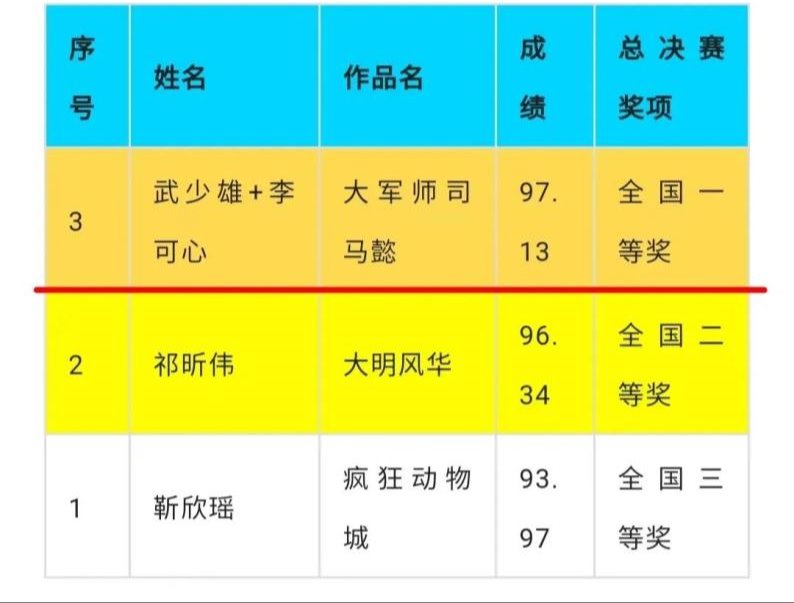 获奖名单截图