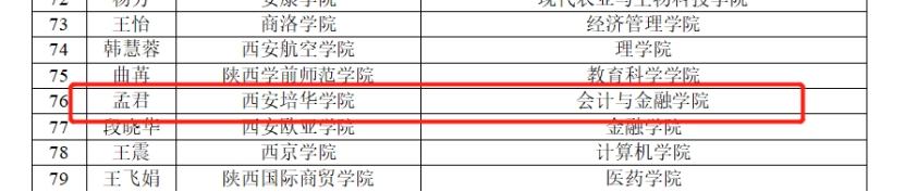 近日,第十三届陕西普通本科高等学校教学名师奖评选结果公布,我校会计与金融学院孟君教授荣获第十三届陕西普通本科高等学校教学名师奖。