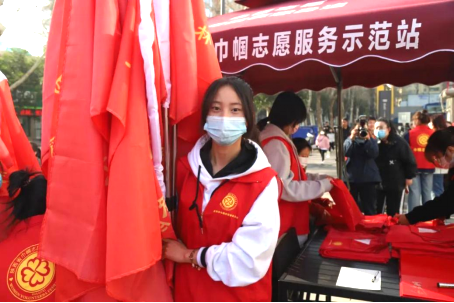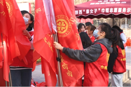 在副校长姚文静的统一部署下,西安培华学院的志愿者们早早到岗,身着红色马甲彰显着巾帼志愿者的良好风貌,同时有序开展着前期准备工作,负责参与活动人员的马甲领取、颁奖授旗等等相关事宜,为活动的顺利举行保驾护航。