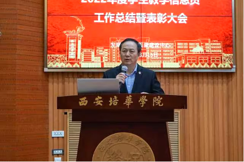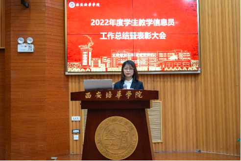 发展规划与质量建设中心主任赵巍宣读了西安培华学院关于表彰2022年度优秀学生教学信息员的通报。