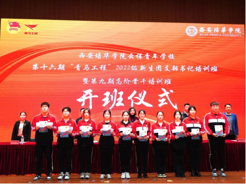 在全国上下深入学习宣传党的二十大精神热潮中,西安培华学院云梯青年学校第十六期“青马工程”新生团支部书记培训班暨第九期高阶骨干培训班开班仪式于3月16日在维之图书馆报告厅召开。