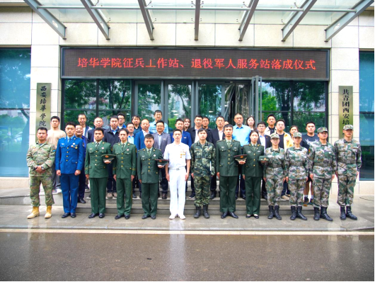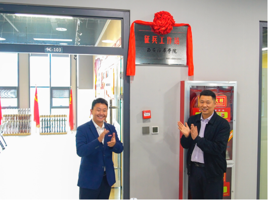 党委宣传部部长柳雨与党委学工部部长蔡亮共同为我校“征兵工作站”进行揭牌,宣布培华征兵工作站正式成立。