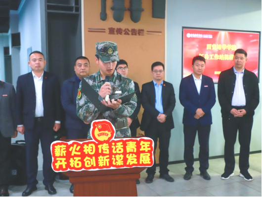 校团委书记讲到大学生退役士兵志愿服务队和国旗护卫队都是培华青年的优秀代表,两个队伍协同开展工作是把“爱国、励志、求真、力行”的理想信念教育扎根在青年心中,是把“责任、荣誉、国家”的使命担当践行在青年行动中,是把“请党放心 强国有我”的铮铮誓言彰显在培华的青年风采中,希望同学们加强阵地融合、做好共享共建,让这抹“橄榄绿”在培华青年大家庭里绽放出最美的绚丽之花。