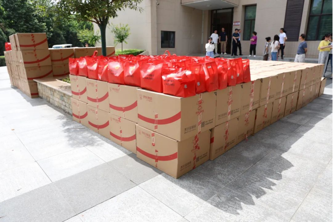 校党委书记罗新远来到分发现场,为教职工送上节日慰问,向大家的辛勤工作表示感谢,并叮嘱大家注意防暑降温、保重身体,让教职工实实在在地感受到“家”的温暖,感受到节日氛围。