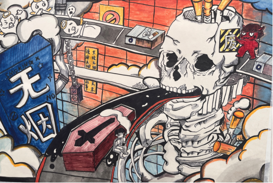 同学们围绕禁烟主题,通过绘制国画、油画、水粉画、版画、综合绘画等形式表达远离烟草的决心与信心,积极倡导健康的生活方式,展现新时代好青年的健康形象与良好风貌。简单而有力的行动不仅代表着每个人对于自己健康的关注,也彰显着对于推动无烟校园建设的责任心。