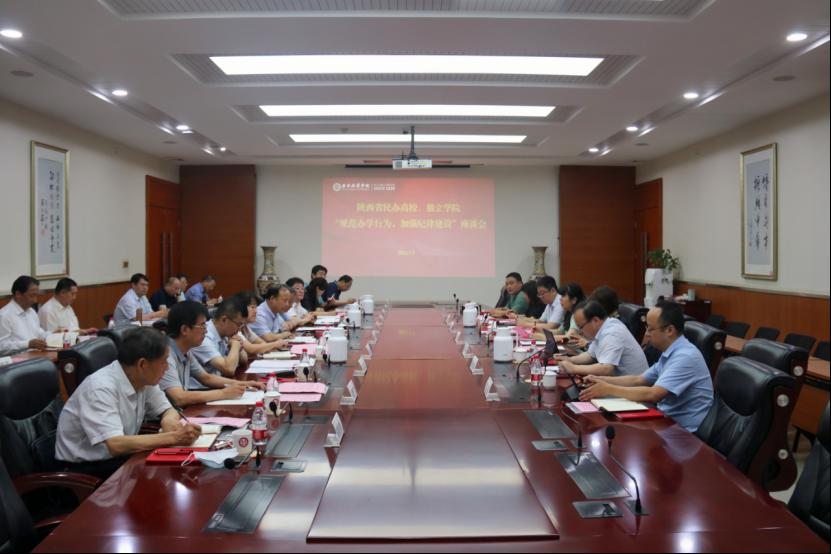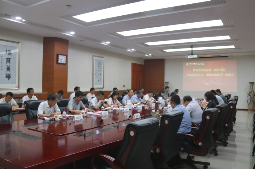 7月7日,陕西省民办高校、独立学院“规范办学行为 加强纪律建设”座谈会于我校明德楼第一会议室召开,省纪委委员、省纪委监委驻省教育厅纪检监察组组长赵军、省委教育工委、省教育厅二级巡视员董侠、省委教育工委组织部部长胡海宁、校外教育培训监管处(民办教育处)处长陈国栋、省纪委监委驻省教育厅纪检监察组二级调研员李婷、省教育厅校外教育培训监管处(民办教育处)一级主任科员贺沁荣、教育厅校外教育培训监管处(民办教育处)干部刘嗣良,以及西安培华学院、西安翻译学院、西安外事学院、西安欧亚学院、西京学院、西安思源学院、西安明德理工学院、西安理工大学高科学院、西安海棠职业学院、西安医学高等专科学校的党委书记、纪委书记等20余人参加会议。本次会议由校外教育培训监管处(民办教育处)处长陈国栋主持。