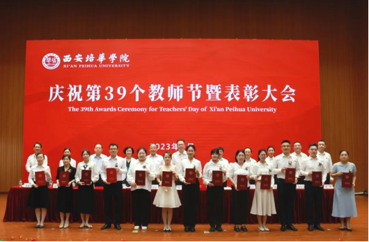 芳华岁月,丹心一片,师以匠心,遍植桃李。9月8日上午,西安培华学院在维之图书馆报告厅举行庆祝第39个教师节暨表彰大会。全体校领导,学校各院(部)、中心负责同志、国家教学赛事获奖代表、省级教学赛事获奖代表、辅导员技能大赛获奖代表,2022-2023年度优秀教师、先进工作者、校级教学名师、教学新星获得者,在校工作满20年特殊贡献者、先进基层党组织及个人,教师代表、学生代表等近500人参加了会议。会议由传媒学院教师尚勇、鲁子瑞主持。