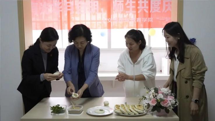 副校长刘越莲、人文与国际教育学院常务副院长梁蕊等教师代表以及学生社区1号楼全体驻楼老师下沉社区走访慰问学生,一同制作传统团圆馍,话团圆,展未来,为在校师生送上节日的祝福。