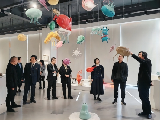 活动前,蔺宝钢教授、郭继锋教授及杨志博士前往学术交流中心参观师生作品展。