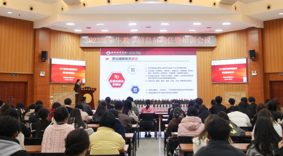 为提高我校学生教学信息员参与教学管理的能力和素质,做好信息收集与反馈工作,持续改进教育教学质量,推进教风、学风建设,学校于11月17日下午,在明德楼报告厅组织召开了2023级学生教学信息员聘任暨培训会议。2023级学生教学信息员近150人参加会议。发展规划与质量建设中心主任助理全婧主持会议。