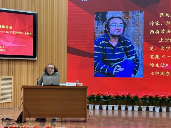 为进一步丰富学生理论知识,拓宽学生视野,充分发挥“博雅讲座”在培养学生人文素质教育方面的作用,11月24日下午,学校邀请作家狄马为我校师生进行了以《我们现在应该怎样读经典——以《水浒传》为例》为主题的博雅讲座活动。讲座由常务副校长胡俊生主持。